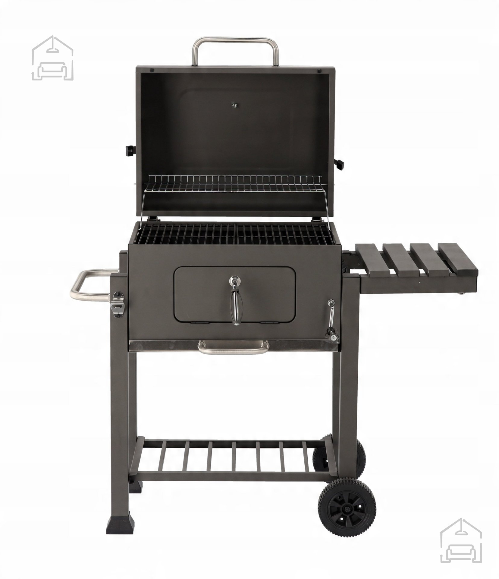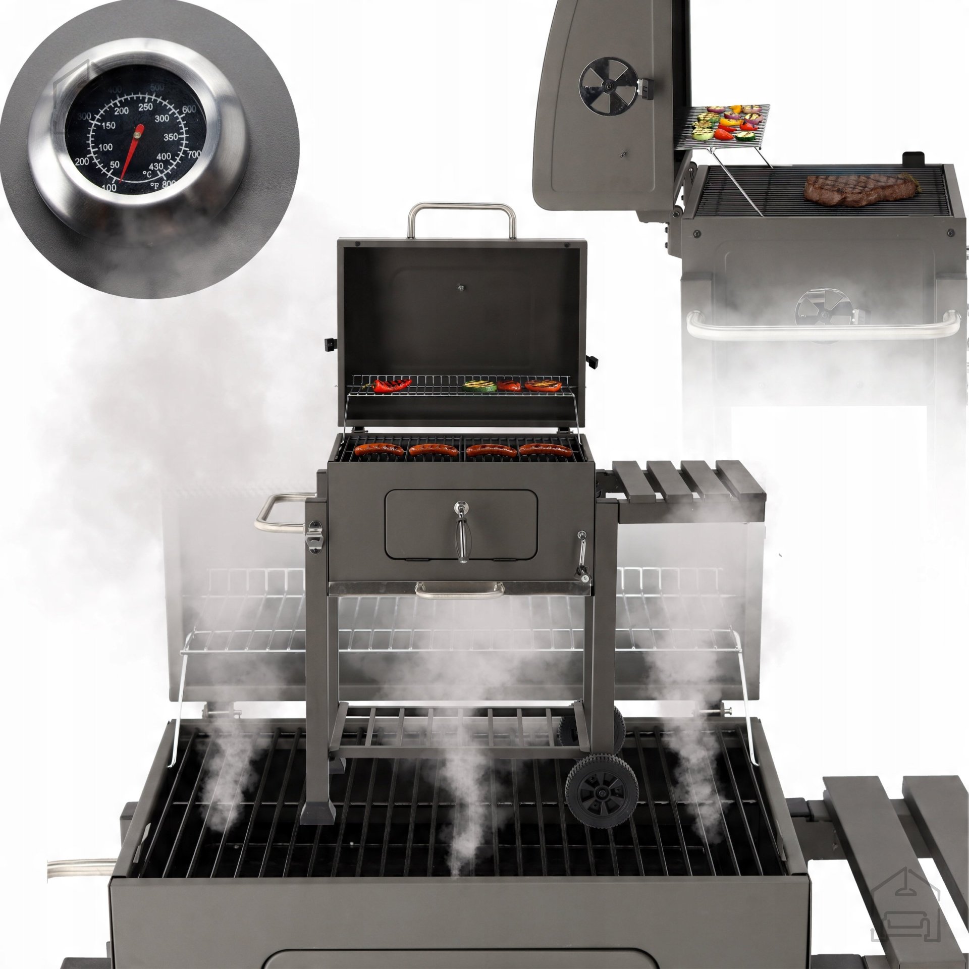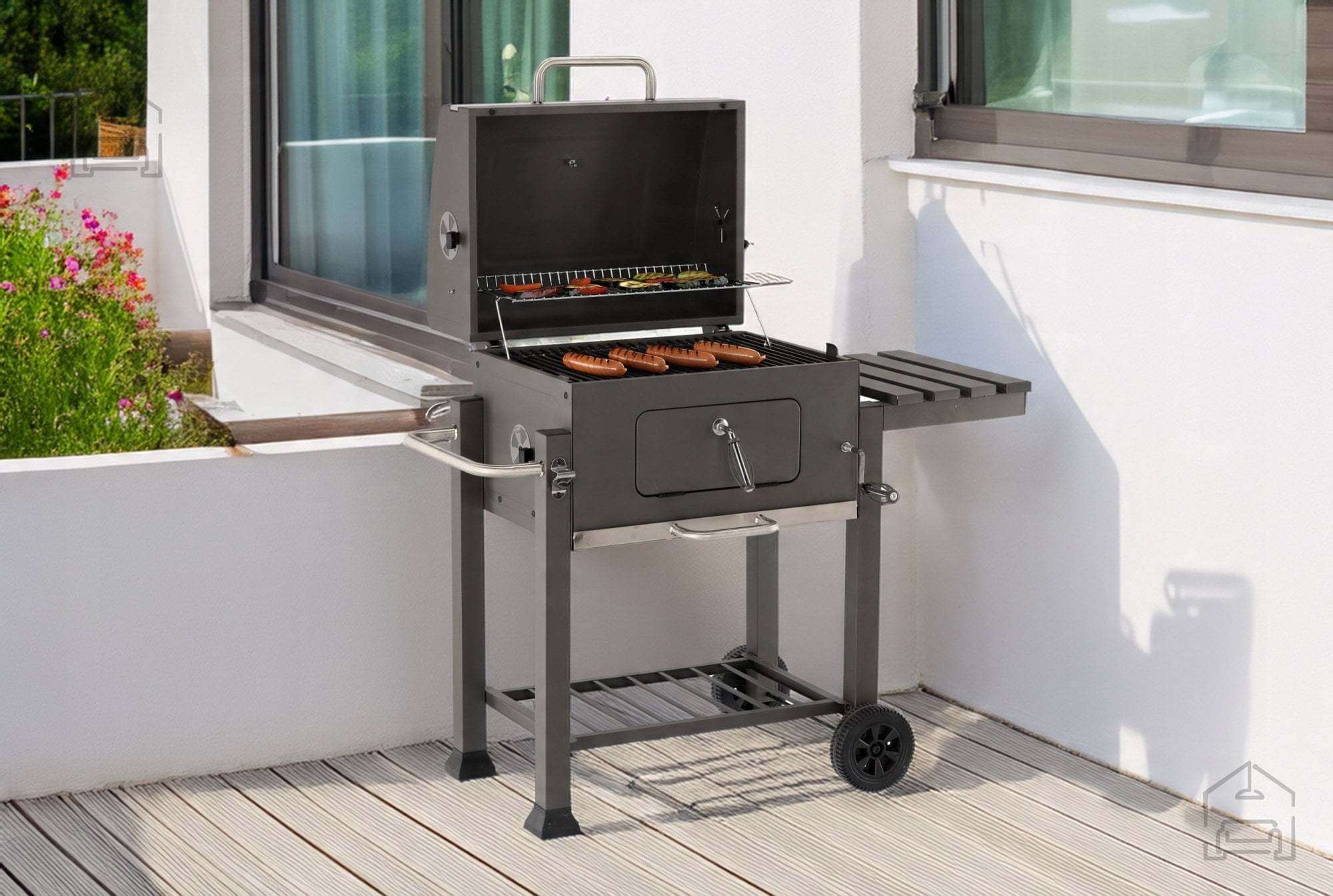 Vrtni žar na oglje s pokrovom Chomik BBQ5320 združuje robustno konstrukcijo, premišljene funkcionalnosti in klasičen dizajn, ki navduši vsakogar, ki rad pripravlja jedi na prostem. Izdelan je iz trpežnih materialov – litoželezne rešetke, nerjavnega jekla in kromiranega kurišča – zato zagotavlja dolgo življenjsko dobo in zanesljivo uporabo. Njegove dimenzije 114,5 × 60 × 108 cm nudijo dovolj prostora za udobno pripravo hrane, ne glede na to, ali gre za družinsko kosilo ali večjo vrtno zabavo.