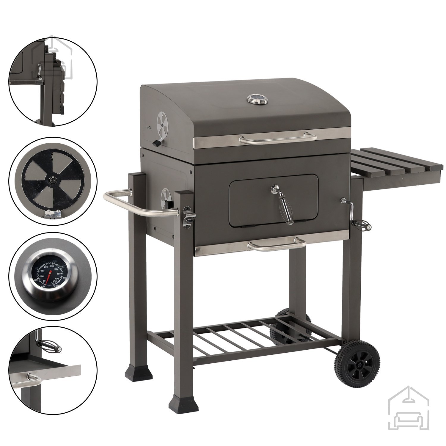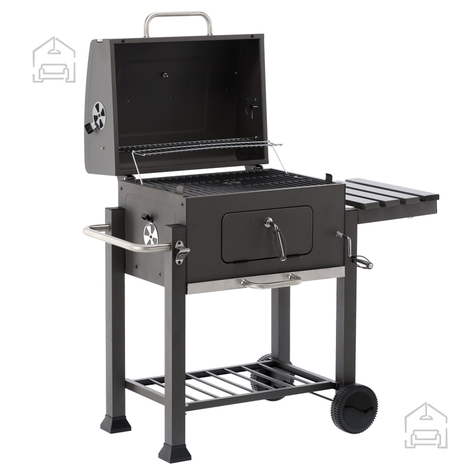 Mobilnost je dodatna prednost tega modela. Opremljen je s kolesi, ki omogočajo preprosto premikanje žara po terasi, vrtu ali dvorišču. Dva ročaja iz nerjavnega jekla zagotavljata varen oprijem in enostavno odpiranje pokrova tudi med peko. Poleg tega je v konstrukcijo vgrajen priročen odpirač steklenic – majhna, a uporabna podrobnost, ki dopolnjuje udobje pri uporabi.