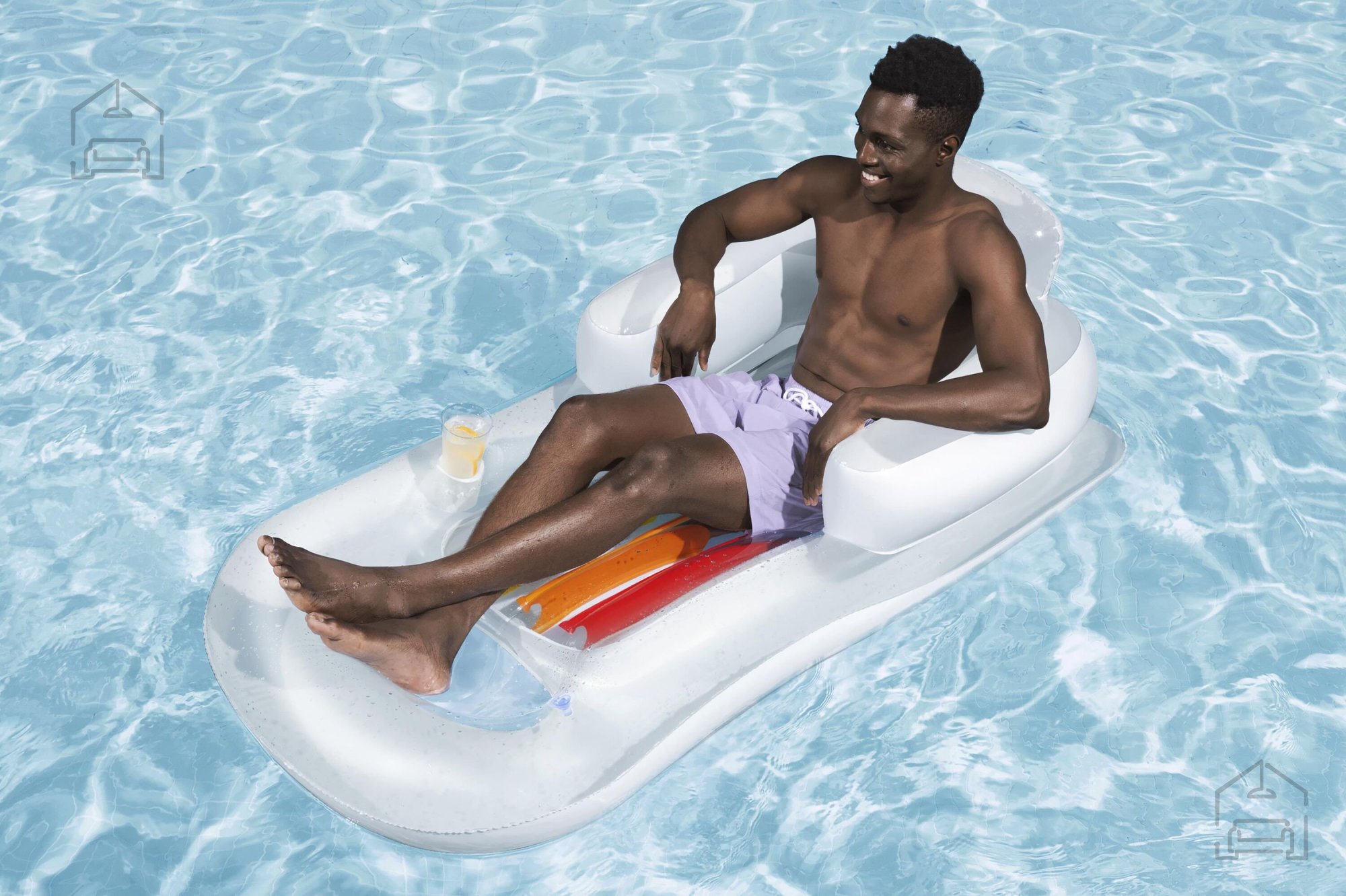 Napenjalna blazina 161x84 cm – BES43028B je zasnovana z mislijo na maksimalno udobje. Napihljivo naslonjalo omogoča, da si uporabnik prilagodi položaj glede na želje – bodisi ležeče za sončenje bodisi rahlo dvignjeno za branje ali opazovanje okolice. Posebna zasnova naslonjala za hrbet in komolce razbremeni telo in preprečuje nelagodje pri daljši uporabi. Dodano držalo za skodelico pa poskrbi, da imate osvežilno pijačo vedno pri roki, ne da bi jo morali postavljati na tla ali v pesek.