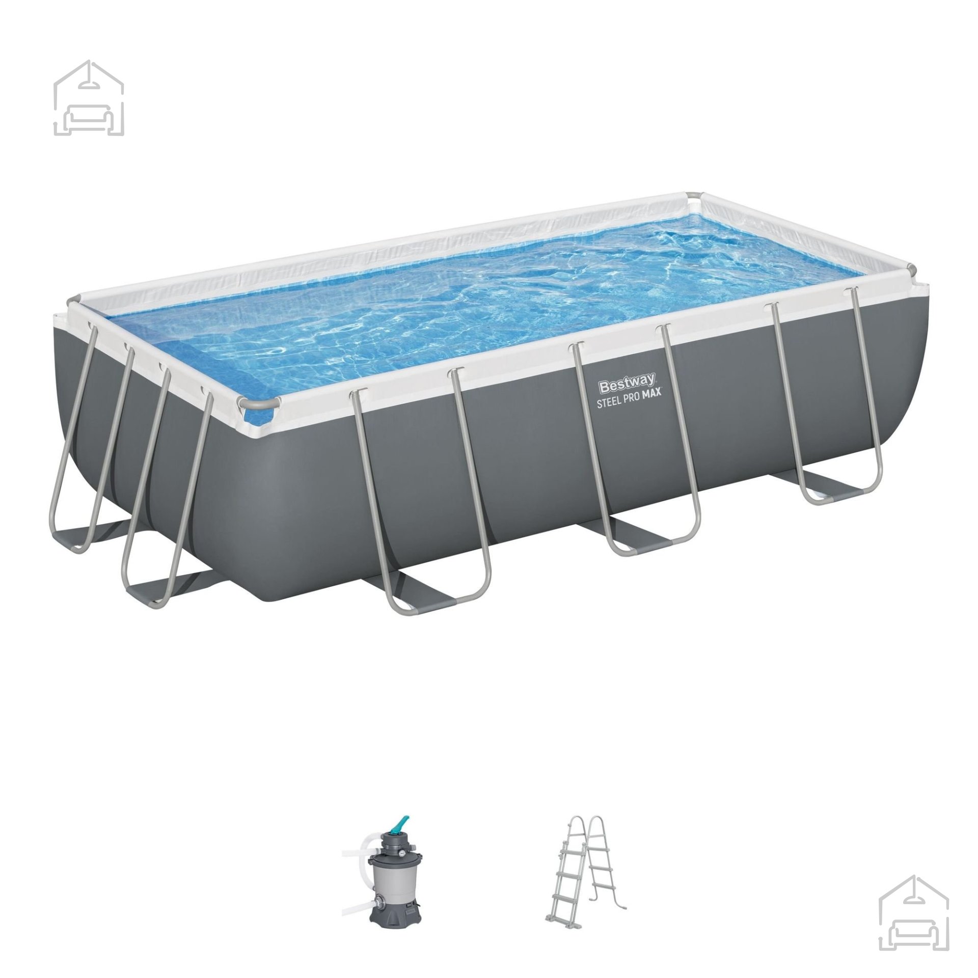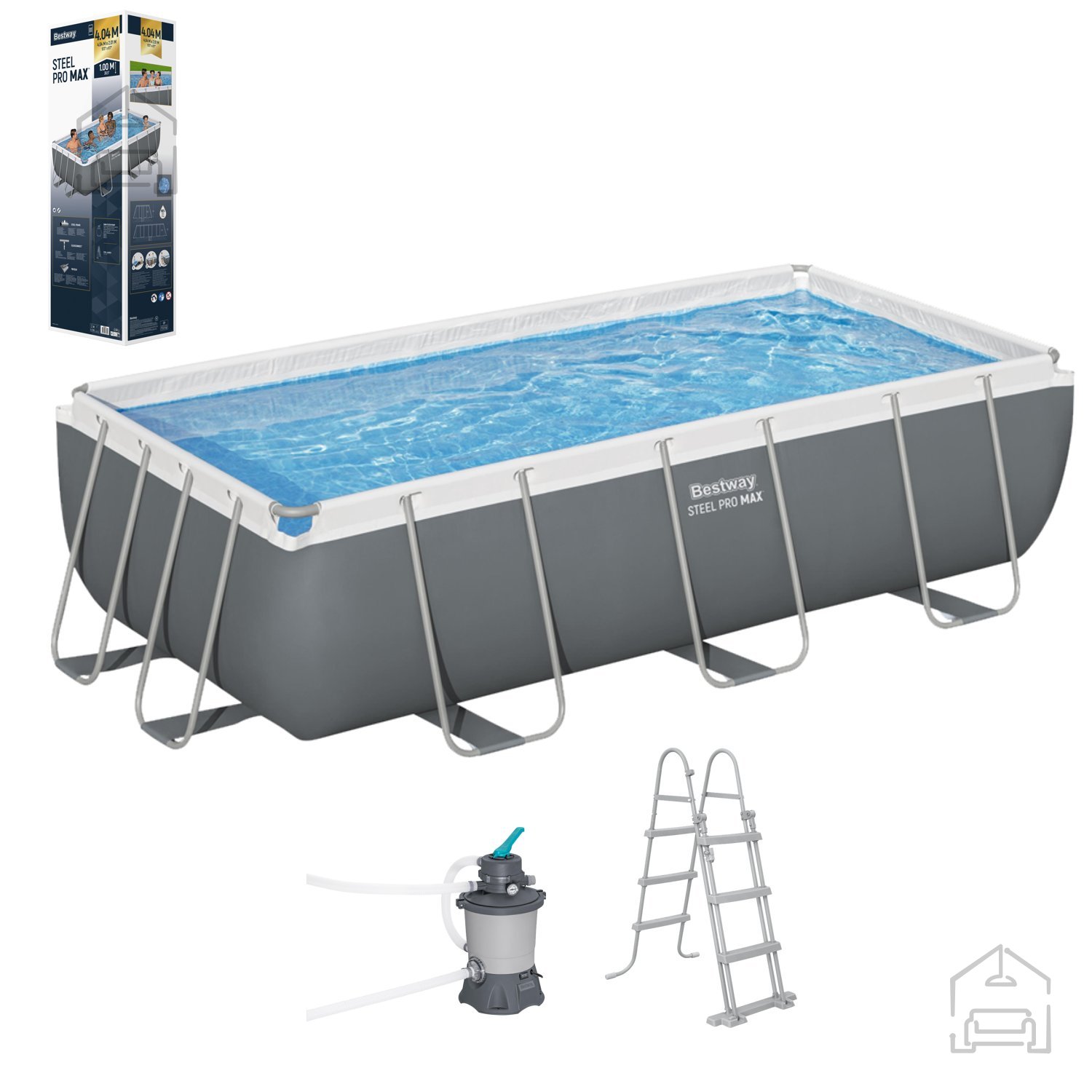 Bazen s kovinskim ogrodjem z merami 4,04x2,01x1 m je odlična izbira za vrt, saj ponuja veliko prostornost in stabilnost. Zaradi trdne konstrukcije je bazen enostaven za sestavljanje ter zagotavlja udobno uporabo. Prostornina znaša 6478 l pri 90 % napolnjenosti z vodo, kar omogoča dovolj prostora za plavanje in zabavo. Filtrirna črpalka z zmogljivostjo 2006 l/h ohranja vodo čisto, celotna konstrukcija pa je stabilna in odporna na poškodbe.