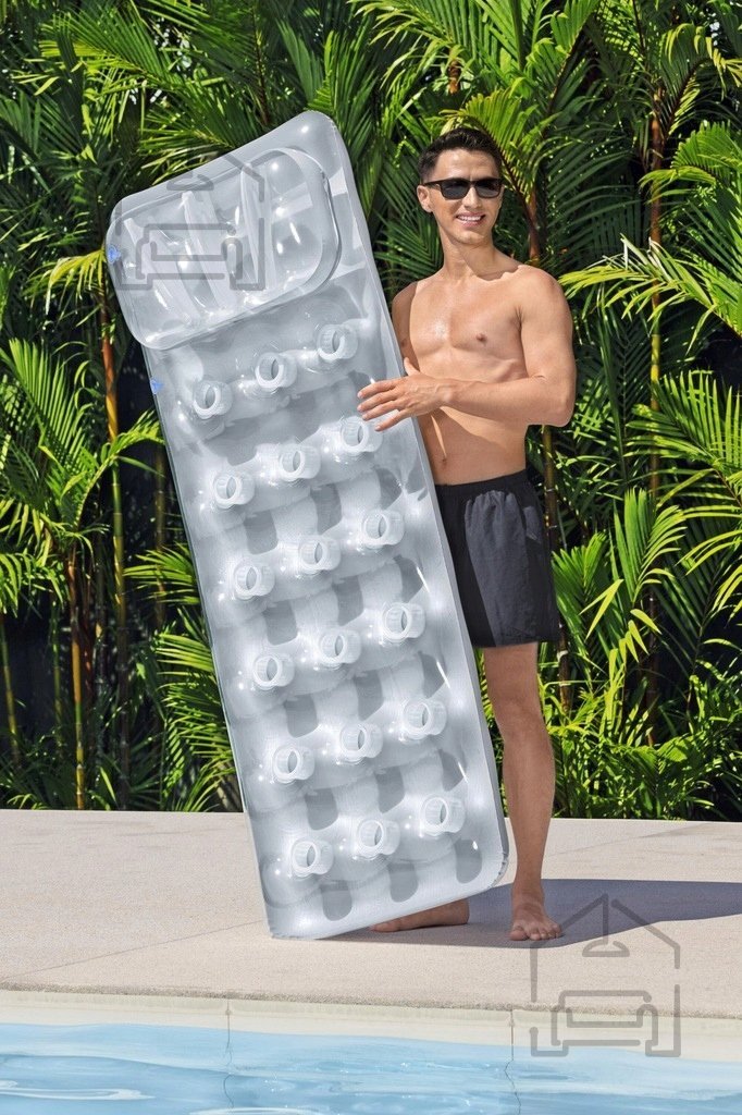 Napenjalna blazina je primerna za domačo uporabo, potovanja ali kot dodatna podlaga za različne aktivnosti. Zaradi svoje velikosti jo je mogoče uporabiti v prikolicah, šotorih ali kot nadomestno ležišče v manjših prostorih. Lahka konstrukcija omogoča enostavno prenašanje in shranjevanje, ko ni v uporabi. Blazino lahko uporabite tudi kot zaščitno podlogo ali dodatno plast za večje udobje pri sedenju ali ležanju.