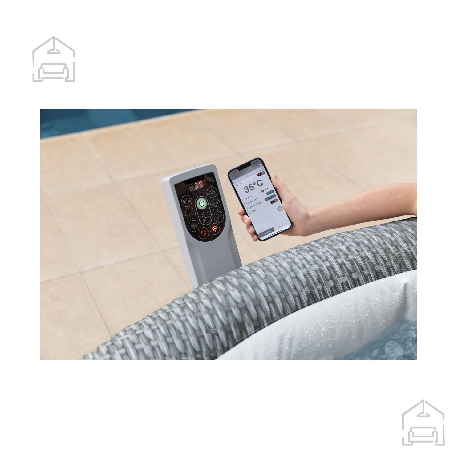 Jacuzzi Lay-Z-Spa Bali AirJet je udoben masažni bazen za 4–6 oseb, ki zagotavlja izjemno sprostitev zahvaljujoč tehnologiji AirJet™. Ko je napihnjen, meri 196 cm x 71 cm, notranja velikost pa je 151 cm, kar nudi dovolj prostora za prijetno sprostitev. Voda se segreje do največ 40 °C, energijsko varčen sistem ogrevanja pa ohranja optimalno temperaturo vode skozi celotno delovanje.