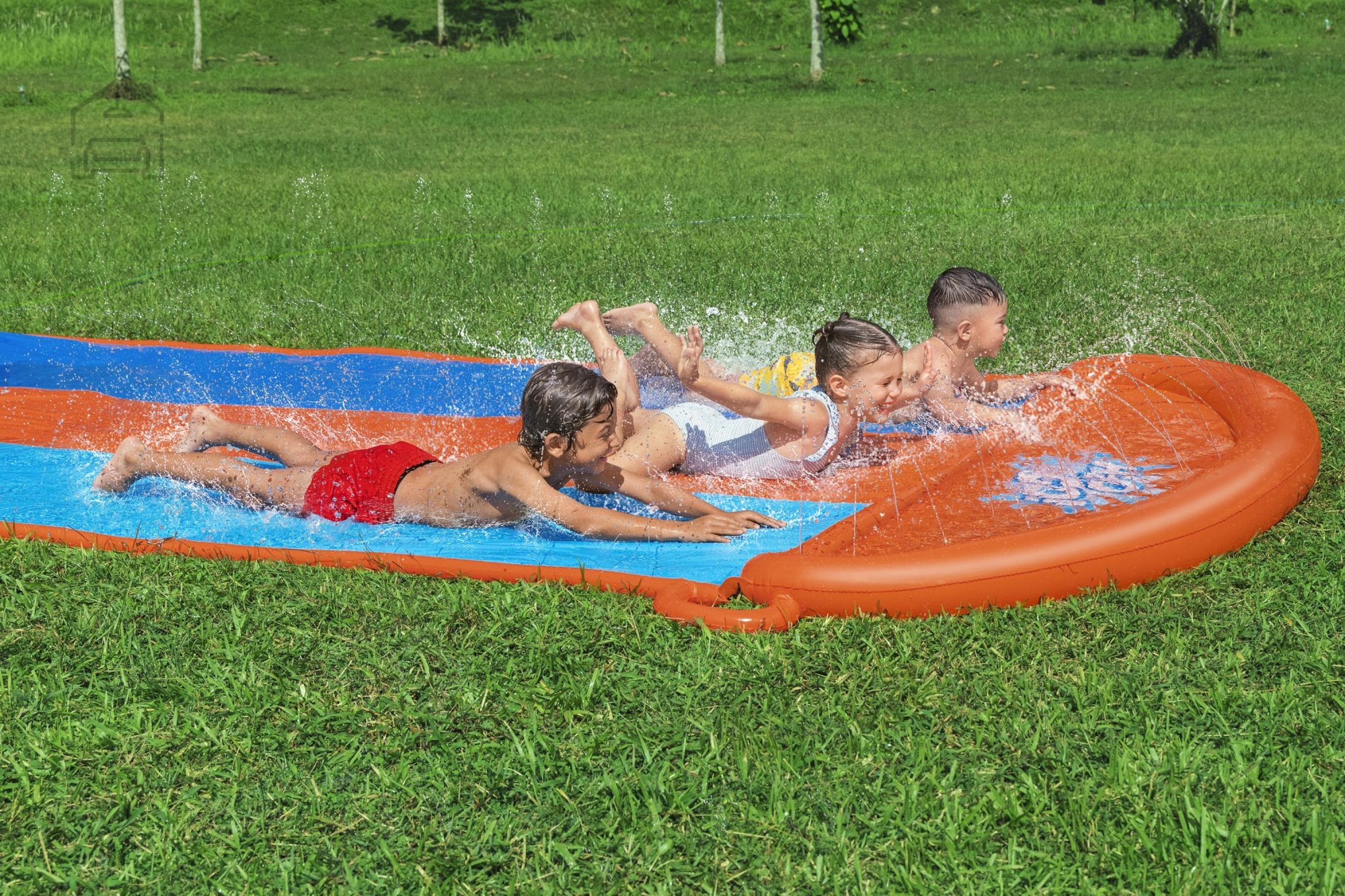 Trojni tobogan 488 cm – BES52329 je zasnovan za uporabo na prostem. Namenjen je igri otrok, ki lahko tekmujejo, kdo se bo hitreje spustil, ali pa se skupaj zabavajo pri hkratnem drsenju. Zaradi treh vzporednih drsnih površin spodbuja sodelovanje in druženje, kar je pomembno za razvoj socialnih veščin pri otrocih. Tobogan je mogoče vključiti v različne tipe igralnih struktur ali uporabiti kot samostojno enoto, če je ustrezno nameščen in pritrjen na stabilno podlago.