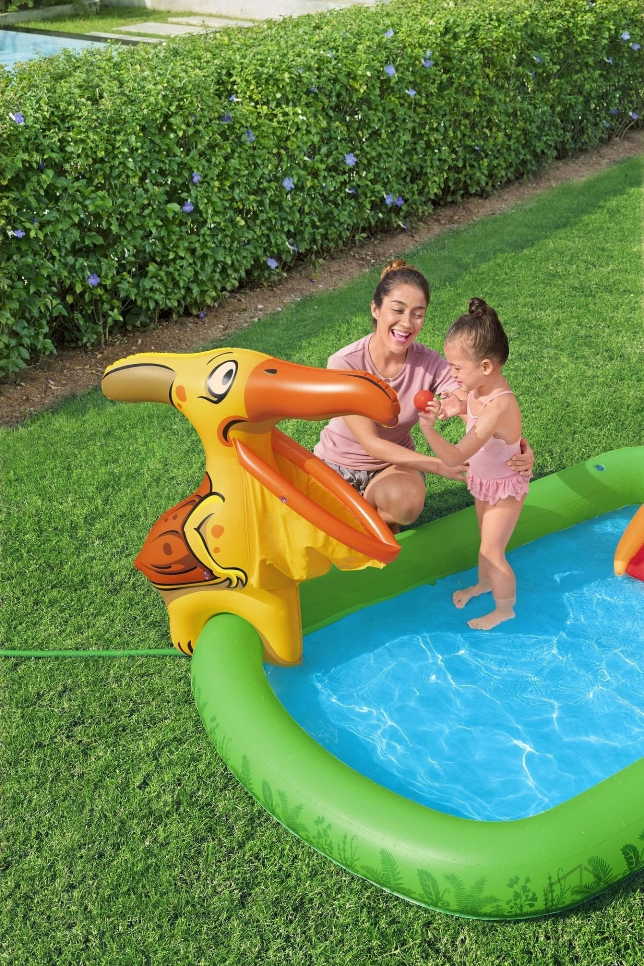 Napihljiv igralni center / bazen s toboganom Jurassic z merami 2,41 x 1,4 x 1,37 m je odlična zabava za otroke na vrtu. Igralni center, opremljen z vodnim toboganom, zagotavlja ure veselja in aktivnosti na prostem. Zaradi prostorne zasnove se lahko otroci brezskrbno igrajo, vodni tobogan pa dodaja še dodatno mero razburljive zabave. Idealna izbira za poletne dni, saj ustvarja popolne pogoje za vodne igre na vrtu.