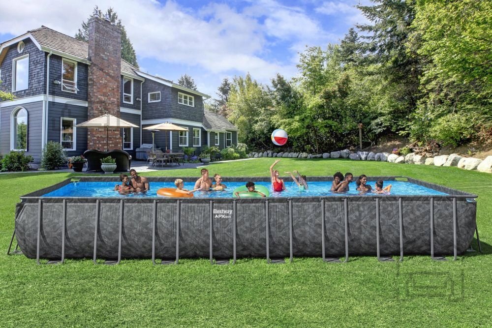 Velik bazen s kovinskim ogrodjem z dimenzijami 9,56x4,88x1,32 m je popolna rešitev za vse, ki iščejo udoben prostor za sprostitev in rekreacijo na vrtu. Trdna konstrukcija ogrodja zagotavlja stabilnost in vzdržljivost, priložena peščena črpalka pa učinkovito čisti vodo, kar omogoča dolgotrajno uporabo bazena brez pogostega menjavanja vode. Bazen je primeren tako za domačo uporabo kot za rekreacijske objekte z večjo obremenitvijo.