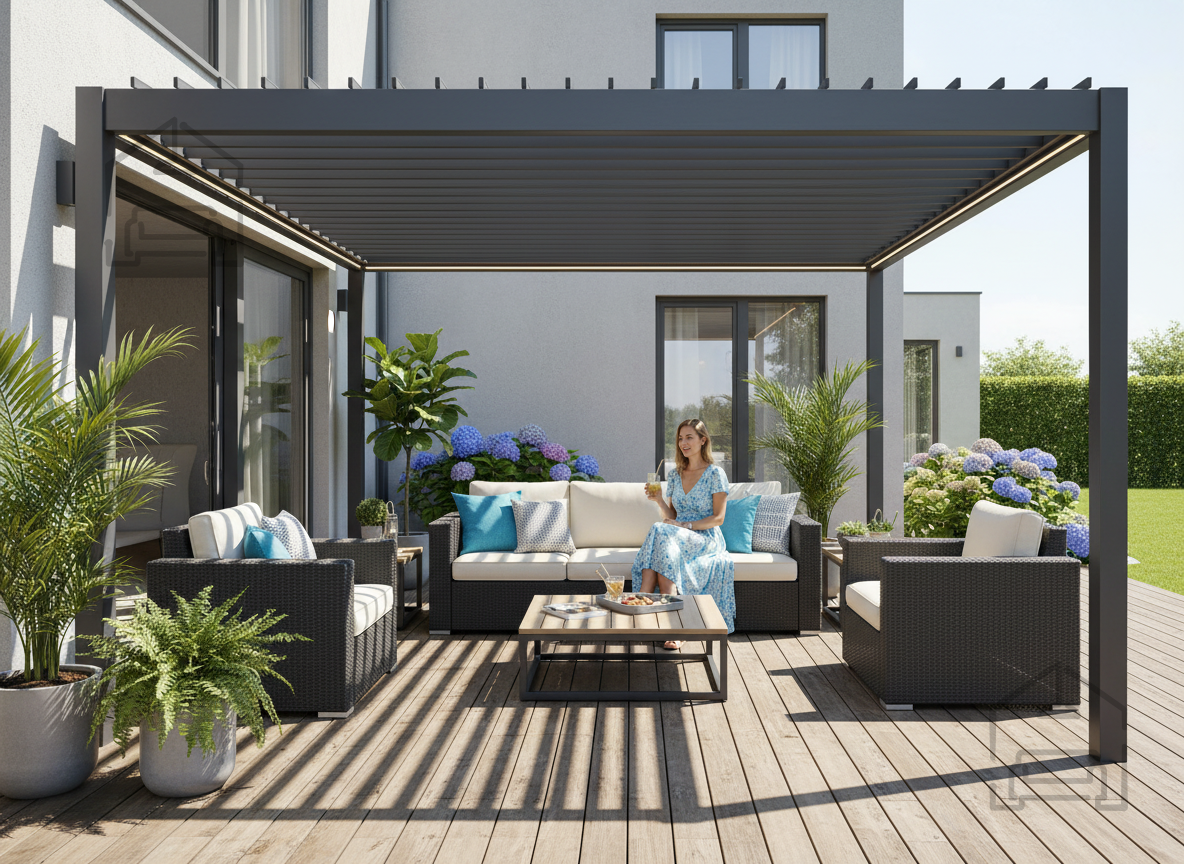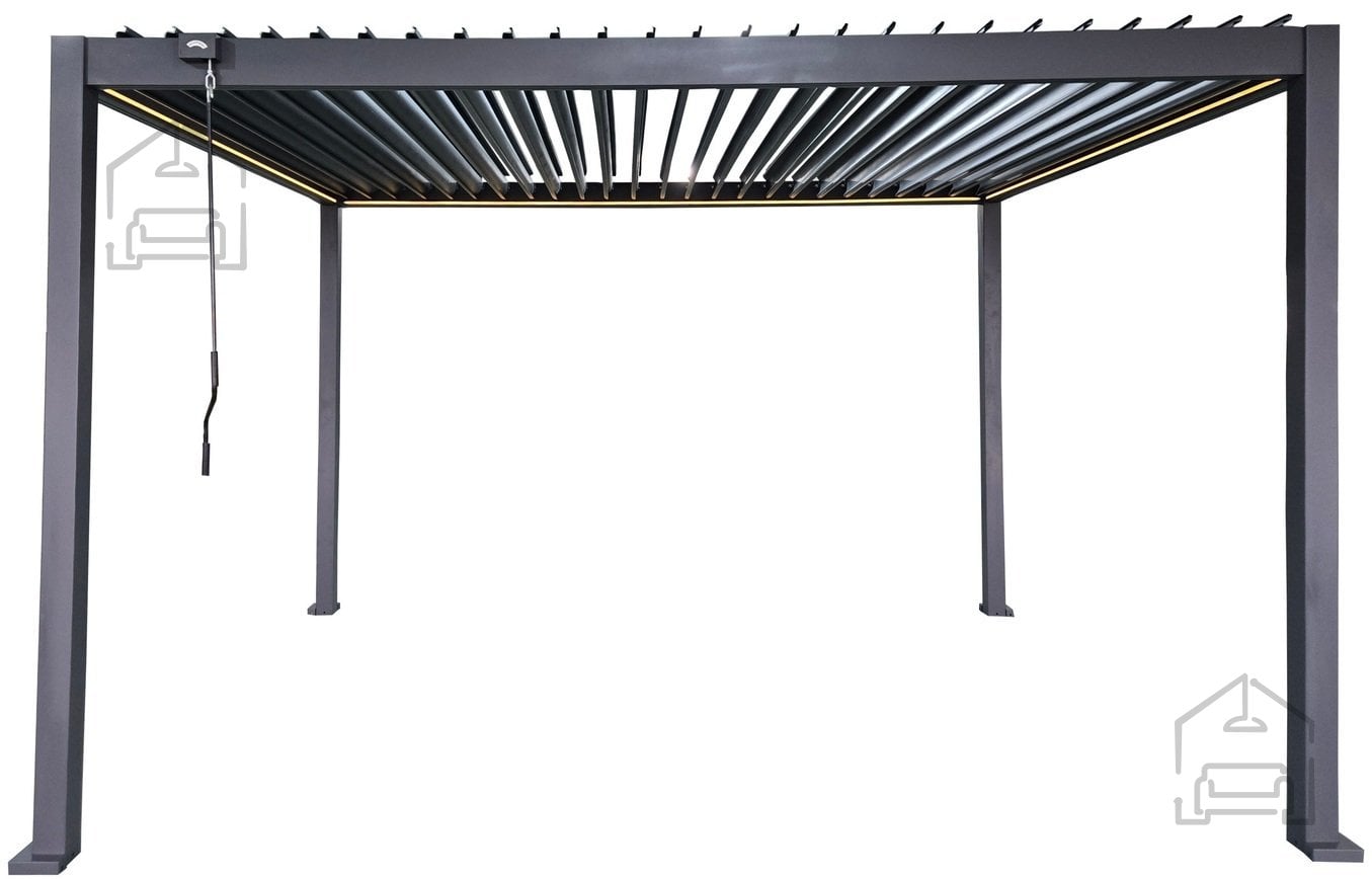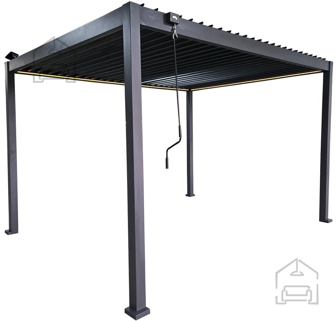 Strešni sistem pergole temelji na aluminijastih lamelah, ki jih je mogoče ročno prilagajati. Ta mehanski sistem omogoča natančno uravnavanje količine svetlobe in pretoka zraka. Ob popolnem zapiranju lamele učinkovito ščitijo pred soncem in rahlim dežjem, ob odpiranju pa omogočajo prijetno naravno ventilacijo. Ročno upravljanje je enostavno in zanesljivo, brez potrebe po električnih priključkih ali motorjih, kar zmanjša možnosti okvar in poveča uporabnost v vseh razmerah.