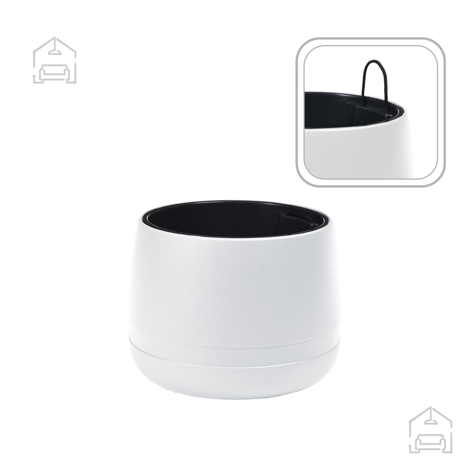 Bela barva lonca Koma prinaša občutek čistosti in svežine. Tak odtenek je nevtralen, zato se ujema z vsemi vrstami rastlin – od zelenolistnih sobnih rastlin do pisanih cvetlic. Bela plastika prav tako vizualno poudari naravne barve rastlin, kar ustvarja prijeten kontrast in harmoničen videz. Zaradi svoje preprostosti lahko lonec uporabite samostojno ali pa ga vključite v večjo dekorativno postavitev, kjer se kombinira z drugimi barvami loncev ali s cvetličnimi stojali.