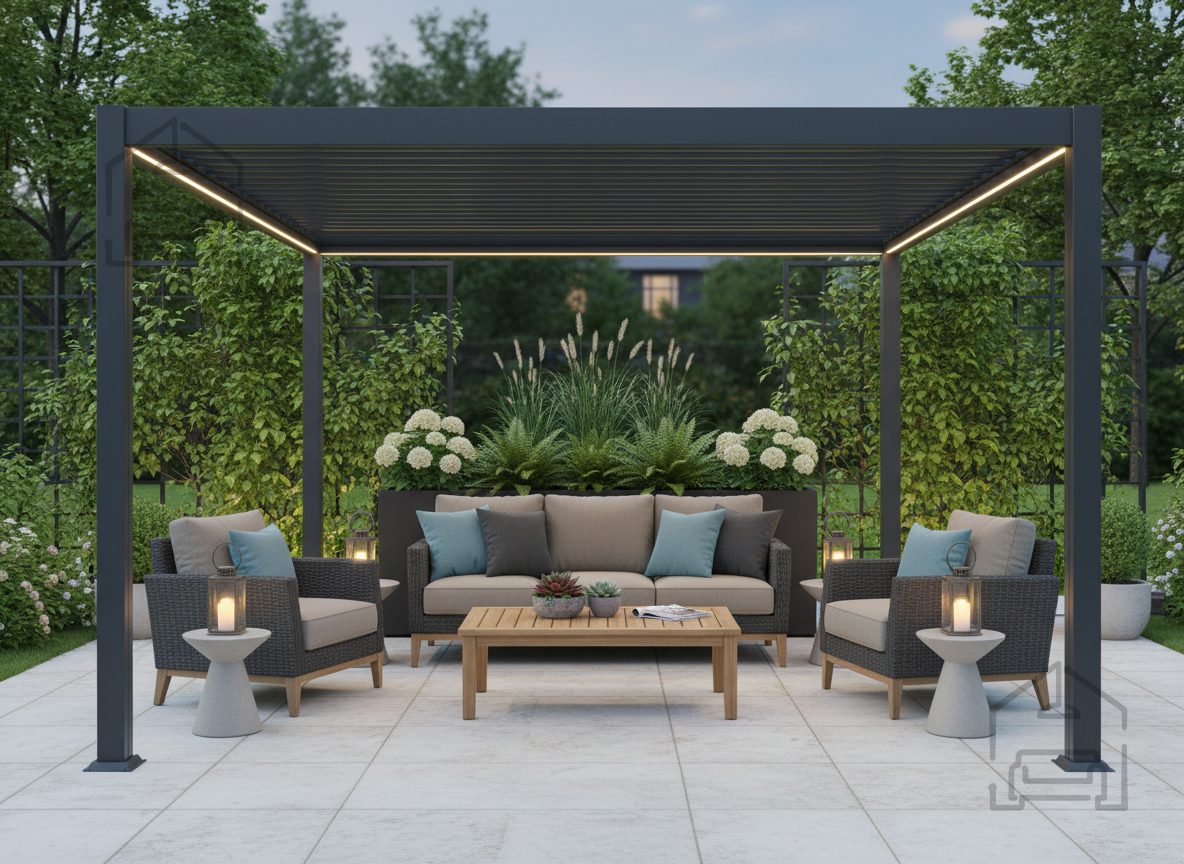 Pergola LED 3×3×2,5 m znamke Chomik je sodobna rešitev za ustvarjanje prijetne zunanje oaze, ki združuje robustnost aluminijaste konstrukcije in napredno sončno LED osvetlitev. Zasnovana je za dolgotrajno uporabo na terasah, vrtovih ali ob bazenih, kjer zagotavlja zaščito pred soncem in hkrati omogoča estetsko, ambientalno svetlobo ob večerih. Antracitni prašno lakiran okvir poskrbi za sodoben videz, ki se zlahka ujema z različnimi arhitekturnimi slogi in zunanjim pohištvom.