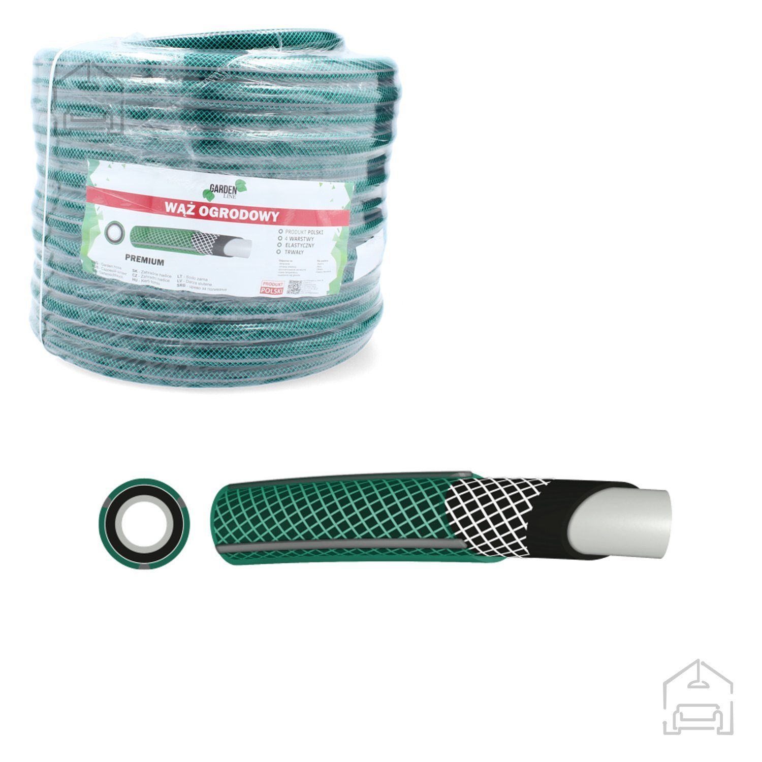 Vrtna cev PREMIUM je izdelana v tovarni Chomik na Poljskem, kjer proizvodni proces poteka pod strogim nadzorom kakovosti. Poljska tradicija v proizvodnji vrtnih pripomočkov zagotavlja trden nadzor nad materiali in postopki, zaradi česar izdelek dosega visoke evropske standarde. Cev ne vsebuje škodljivih primesi, kar jo naredi varno za uporabo pri delu z vodo, namenjeno zalivanju rastlin ali trave.