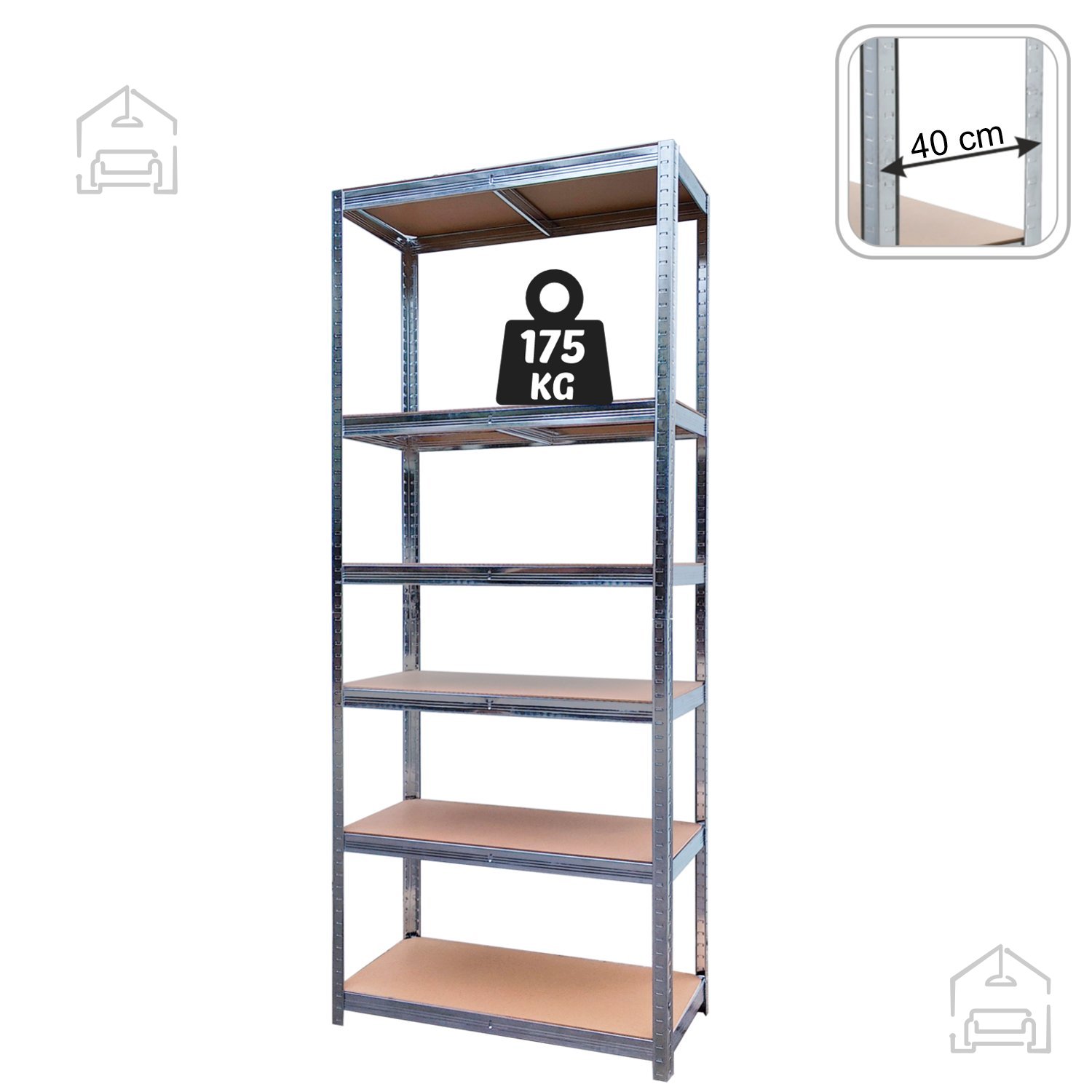 Nosilnost posamezne police znaša do 175 kg, kar pomeni, da je celoten regal sposoben prenesti skupno obremenitev do 875 kg, če je teža enakomerno razporejena. Takšna zmogljivost omogoča varno shranjevanje težjih predmetov, kot so orodje, arhivske škatle, gospodinjski pripomočki ali zaloge v skladišču. MDF-plošče zagotavljajo gladko površino, ki je odporna proti praskam in udarcem, hkrati pa se enostavno čisti. Trdna konstrukcija preprečuje upogibanje polic, tudi pri večjih obremenitvah, kar bistveno podaljšuje življenjsko dobo regala.