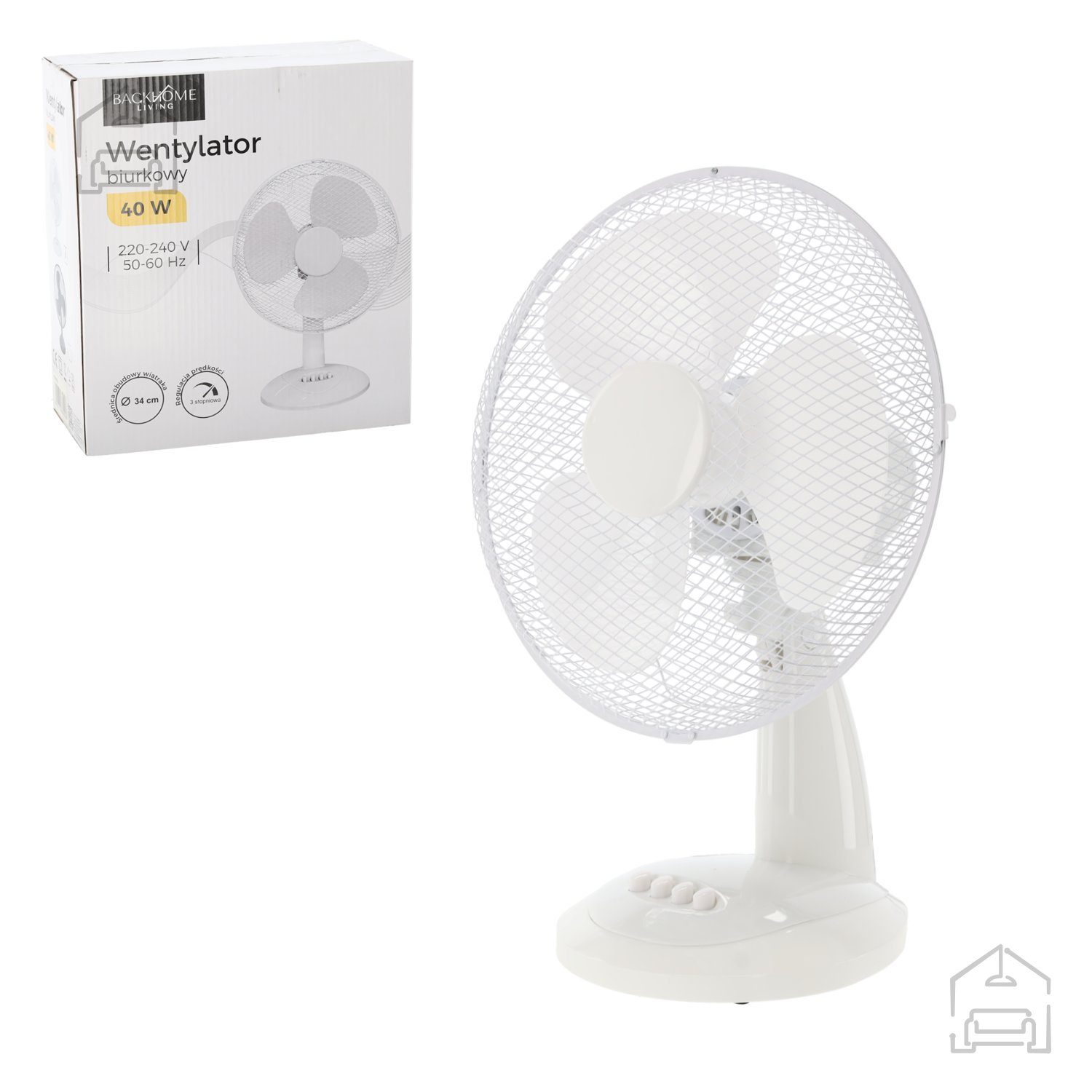 Namizni ventilator 40W - bel - FAN9028 znamke Chomik je praktična rešitev za hitro in učinkovito osvežitev zraka v vsakem prostoru. Zahvaljujoč kompaktni obliki se odlično prilega na pisalno mizo, polico ali nočno omarico, hkrati pa zagotavlja zanesljivo delovanje in stabilnost. Z močjo 40 W in premerom 34 cm ustvarja prijeten pretok zraka, ki pomaga ohranjati udobno temperaturo tudi v toplejših dneh. Bela barva ohišja se lepo ujema z različnimi vrstami notranje opreme, zato ventilator ni le funkcionalen, temveč tudi estetsko dopolnilo prostora.