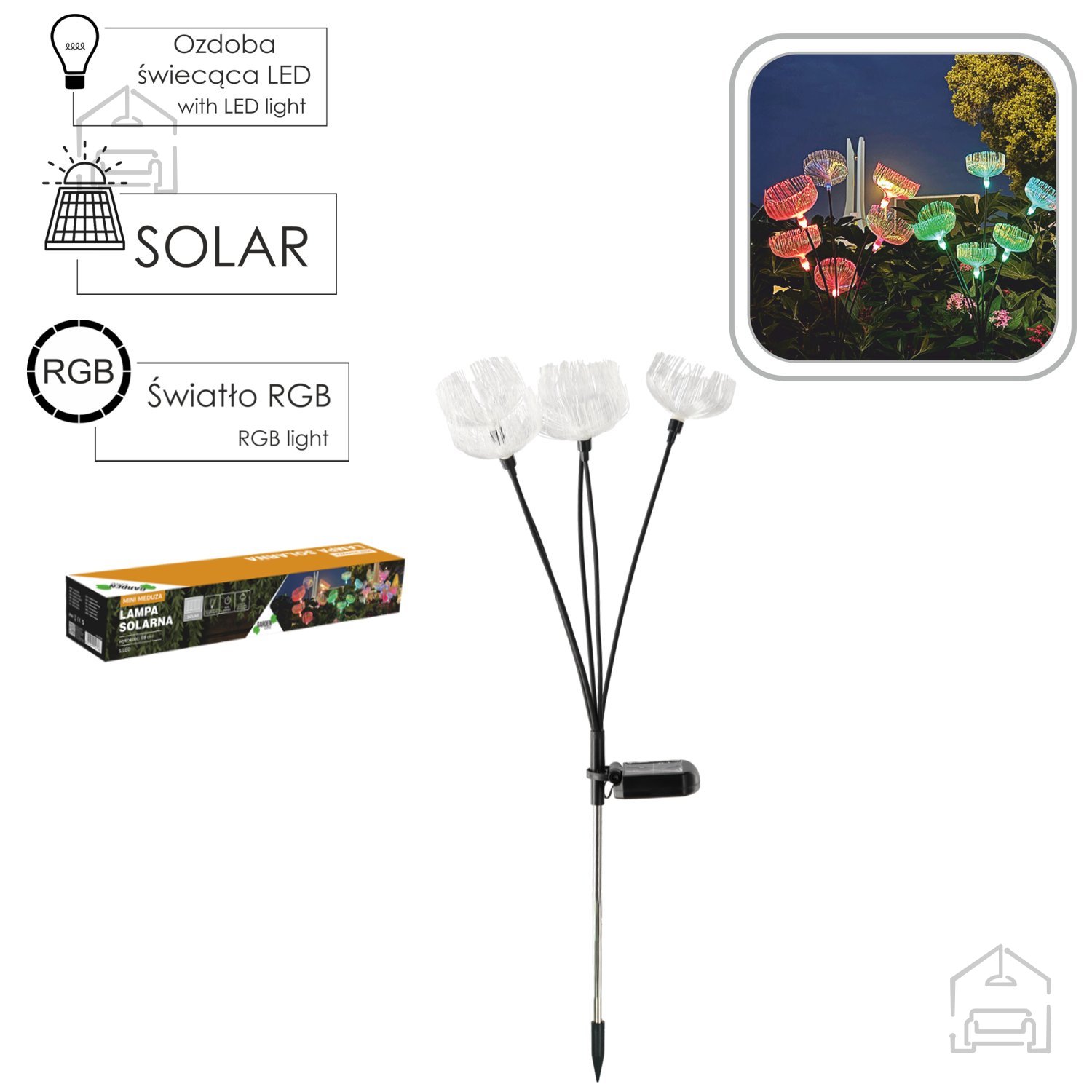 Svetilka je opremljena s 5 LED diodami, ki oddajajo nežno svetlobo in samodejno menjajo barve. Takšna kombinacija omogoča vizualno popestritev prostora brez močne osvetlitve, kar je idealno za dekorativne namene. Višina svetilke znaša 68 cm, zato se lepo ujema z zasaditvami ali vrtno potko ter ponuja dobro vidljivost v nočnem času.