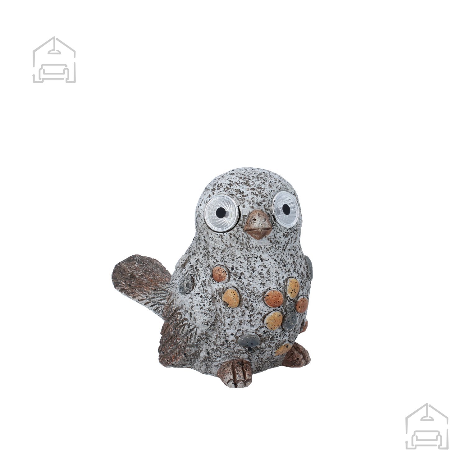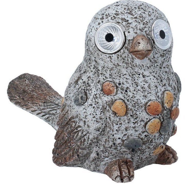 Ta ljubka vrtna figurica v obliki ptice prinaša v vaš zunanji prostor edinstven pridih igrivosti in svetlobne topline. Izdelek je zasnovan tako, da združuje dekorativno vrednost in praktičnost, saj LED osvetlitev v očeh ptice ustvari nežen sij, ki ob mraku privabi pozornost in poudari detajle figurice. Zaradi svojih kompaktnih dimenzij 17x12x15 cm je primerna za različne prostore – od okenskih polic in teras do vrtnih gredic ali balkonov. Sivo obarvana površina se lepo ujema z naravnimi toni okolice in drugimi zunanjimi dodatki.