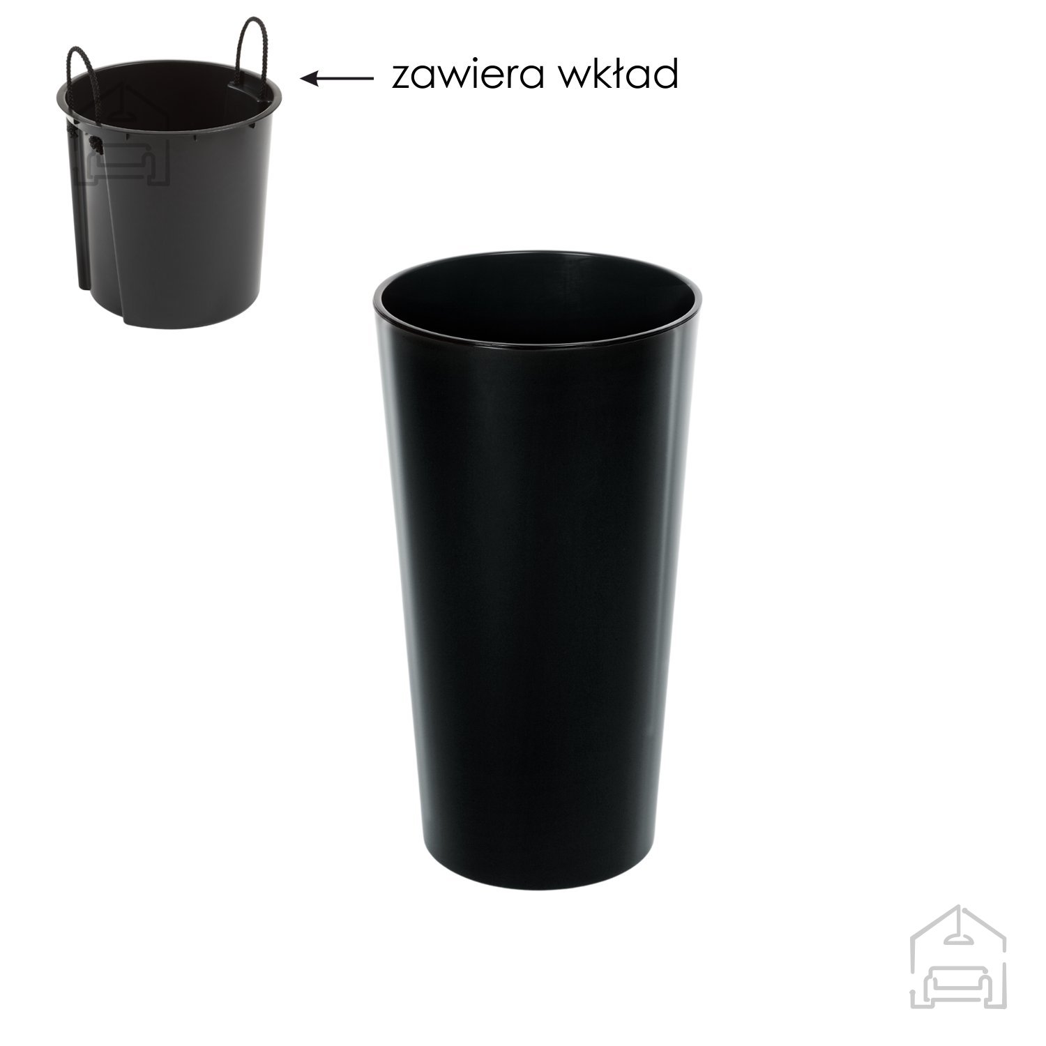 Model Llilia je izdelan v tovarni Chomik na Poljskem, kar zagotavlja dosledno kakovost izdelave in natančno obdelavo robov. Površina lonca ima enakomerno črno barvo, ki se ne blešči pretirano, zato lonček ne odvrača pozornosti od same rastline. Vključeni vložek omogoča enostavno sajenje ali prestavljanje rastlin brez neposrednega stika z notranjo površino lonca, kar dodatno podaljša življenjsko dobo izdelka in omogoča boljšo higieno pri zalivanju.