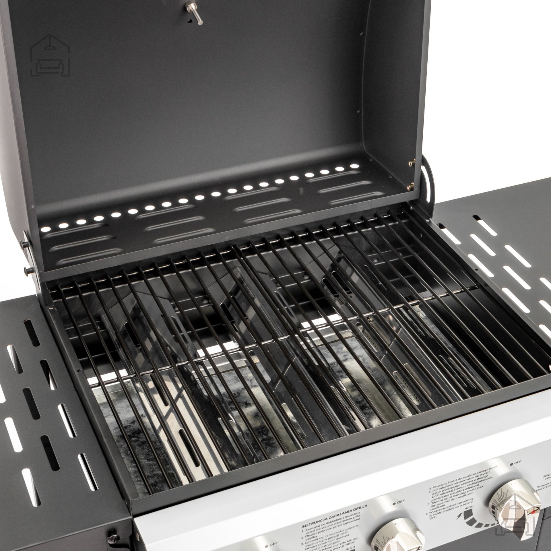 Litoželezna rešetka in trije gorilniki: plinski žar s pokrovom – Brand.