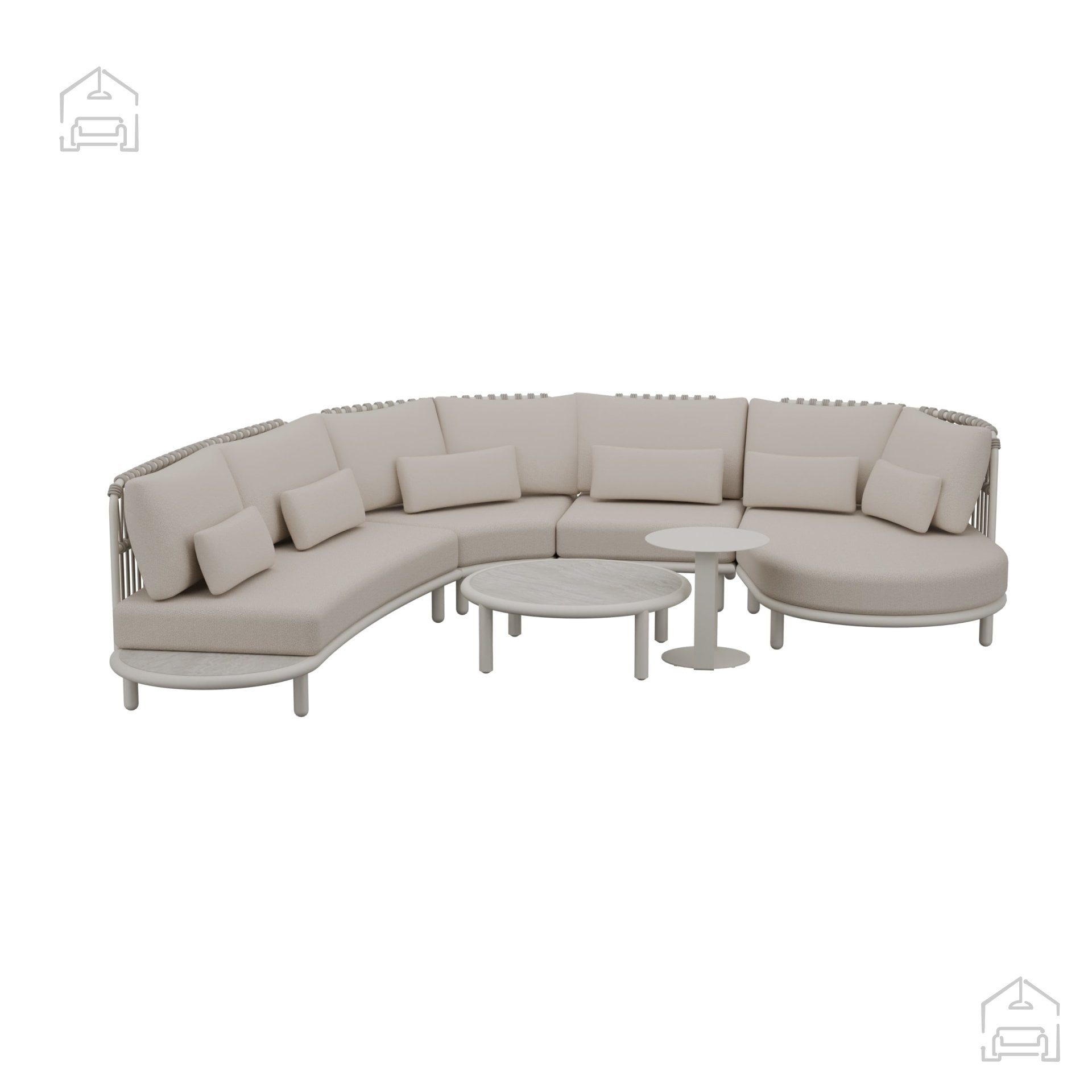 Šestdelna modularna zasnova omogoča popolno svobodo pri razporejanju posameznih elementov. Lahko ustvarite prostorno zunanjo zofo, intimno bralno nišo ali odprt prostor za druženje z gosti. Modularnost pomeni, da se komplet Es Vedra prilagodi vašim potrebam in trenutnemu razpoloženju – z nekaj preprostimi premiki spremenite celotno postavitev. Takšna prilagodljivost je idealna za tiste, ki radi spreminjajo videz svojega vrta ali terase glede na letni čas ali priložnost.