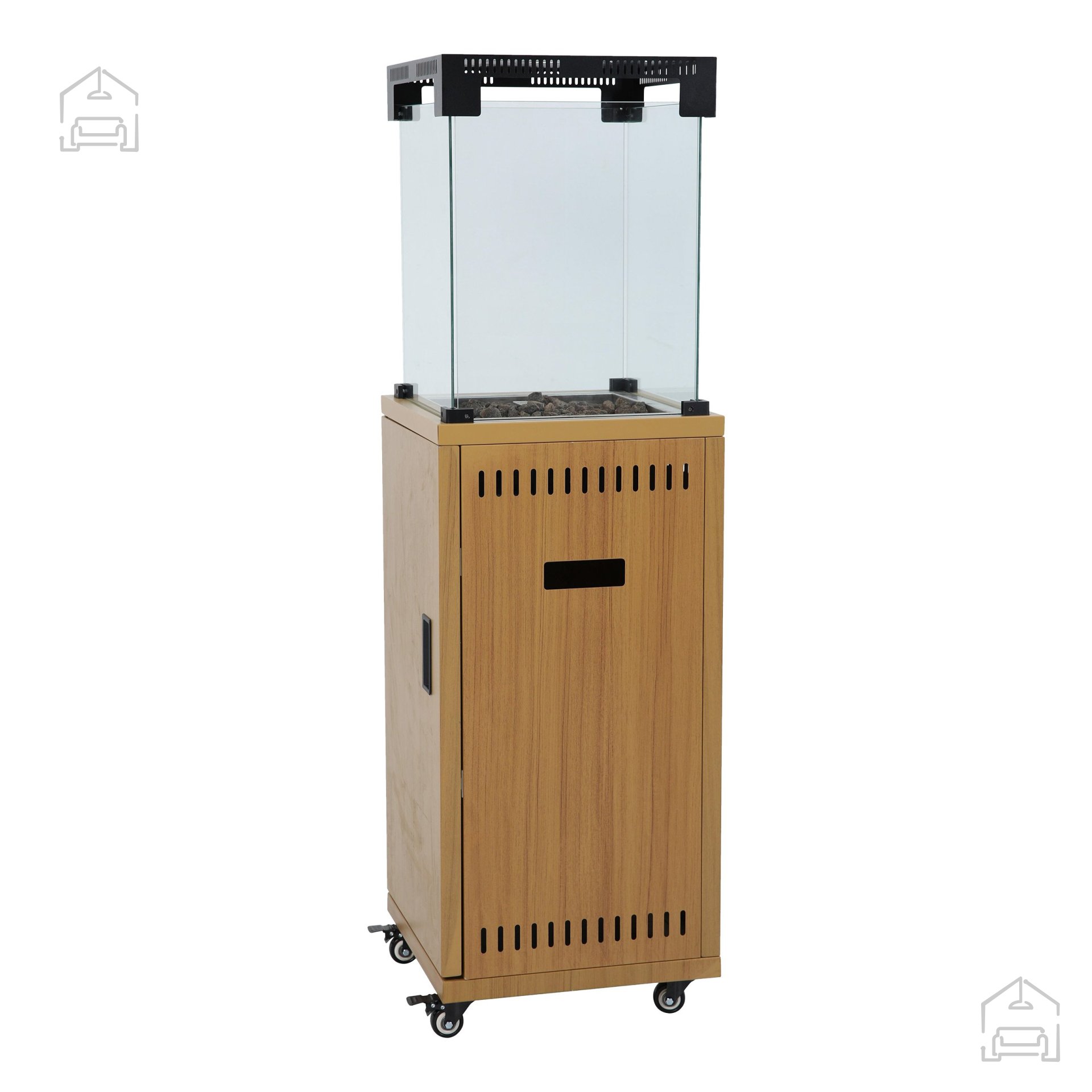 Jeklena konstrukcija, prašno barvana v videzu lesa: plinski grelec za teraso – Garden Flame.
