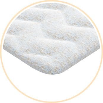 • Kokosova vlakna (kokosova coira) – naravni, prezračen in hipoalergen material, ki zaradi lateksiranja ohranja prožnost ter povečuje trdnost in odpornost proti deformacijam. Ta plast dodatno prispeva k pravilni podpori hrbtenice.