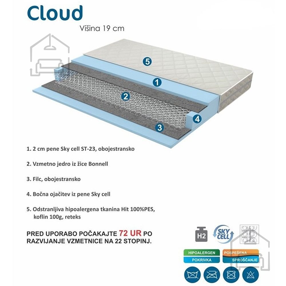Zunanja plast vzmetnice je izdelana iz 100 % poliestra. Ta tkanina je mehka na otip, odporna proti obrabi in hipoalergena, zato je primerna tudi za tiste, ki imajo občutljivo kožo ali težave z alergijami. Prevleka je snemljiva, kar omogoča preprosto čiščenje in vzdrževanje svežine spalne površine. Zahvaljujoč tej lastnosti lahko vzmetnico ohranjate čisto in prijetno brez potrebe po dodatnih zaščitnih prevlekah, čeprav jih je seveda možno uporabiti za še boljšo zaščito.