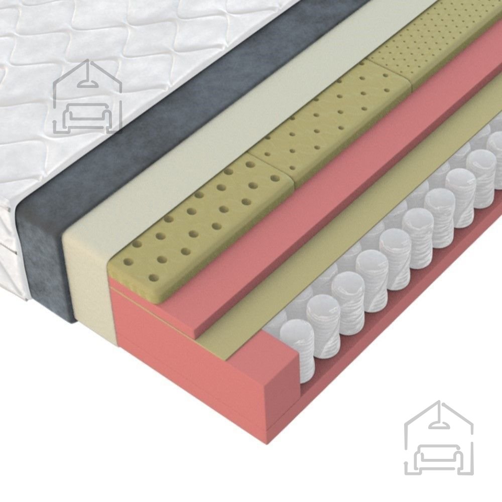 Nad vzmetnim jedrom se nahaja 7 cm debela plast lateks pene, ki je znana po svoji elastičnosti, zračnosti in odpornosti proti deformacijam. Lateks v 7 conah dodatno okrepi učinek coniranega vzmetenja in omogoča prilagajanje telesu z naravno prožnostjo. Naslednja plast je 4 cm HR pena v kombinaciji z Ecofilcom – materialom, ki prispeva k stabilnosti in enakomerni porazdelitvi pritiska. Ob robovih je dodana 8 cm Comfort pena, ki izboljšuje robno stabilnost in omogoča, da je ležišče po celotni površini uporabno, brez občutka posedanja.